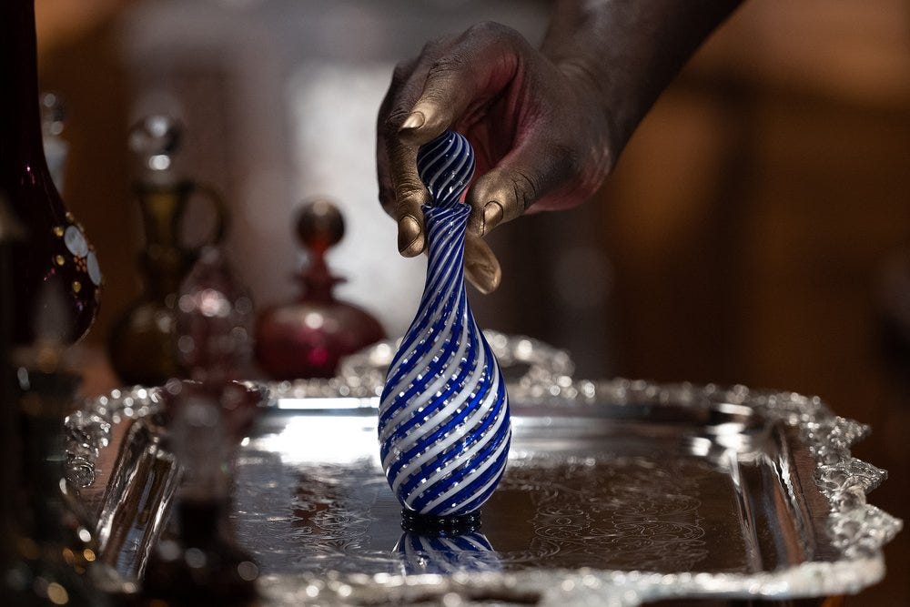 Idris and Tilda are intoxicating on screen together. They each have their own unique and well-known timbre, and together their voices dance and intertwine like musical arrangement. The Djinn’s story is long and fraught with sadness and conflict and dismay. Alithea, a scholar who has dedicated her life to learning the many ways that humans tell stories, presents herself as having a wholly contented life, but as the Djinn shares his story we see through Alithea’s guise. Deep beneath her facade lie the broken pieces of lifetimes missed and squandered. Obviously, the best way to make a story of fantastical scale find a home in its audience you have to appeal to common sensibilities, and in today’s world of chaos and duplicity, seeing the make believe “I’m alright, really,” of someone be taken apart is deeply cathartic, if not also a hair mortifying. In the last two years everyone I know has had to put on a mask of sorts in an attempt to convince those around them that the reflexive “doing good” that follows the common small talk of “how are you” is even remotely true. Three Thousand Years of Longing confronts this with a scalpel. Dicing through Alithea’s defenses and the Djinn’s vulnerability to then reconstruct the two beings together in a tale of love and intimate friendship.